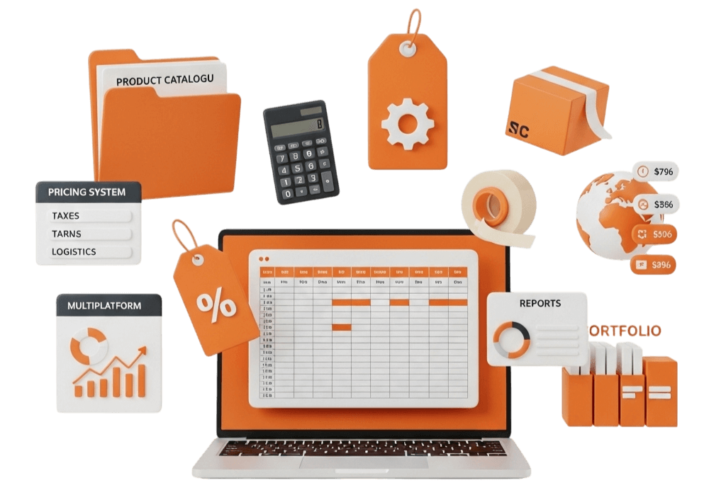 Você insere seus produtos, preços e taxas. Em poucos minutos, a planilha faz os cálculos automáticos e entrega uma visão completa do seu negócio, poupando horas de tentativa e erro.